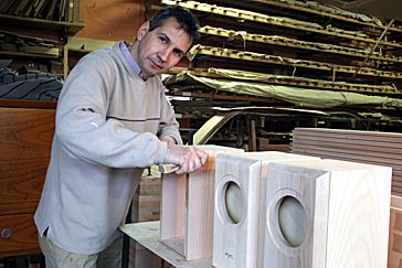 Für die Front- und Rückwände verwenden wir stabverleimtes Massivholz. Die Kanten sind gerundet, um unerwünschte Schallbrechungen zu vermeiden. Die Seitenteile umlaufend bestehen aus MDF mit ausgewähltem Echtholzfurnier und das Gehäuseinnere ist mit Schafwolle gedämmt.